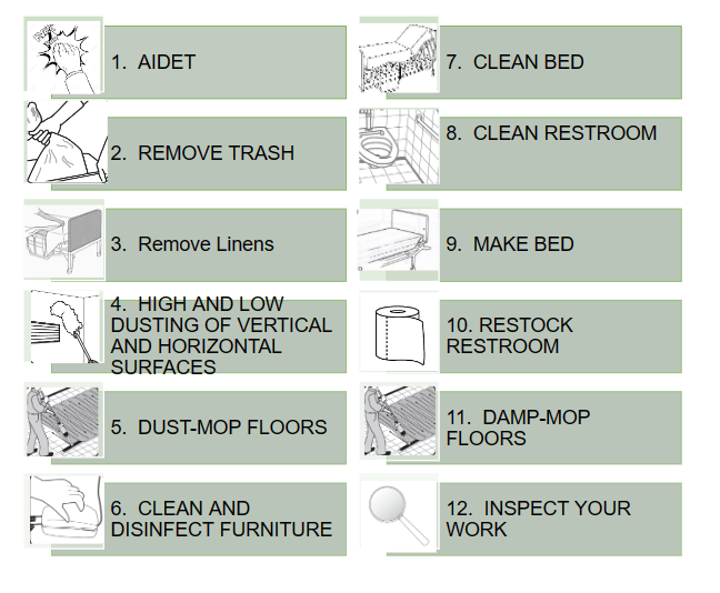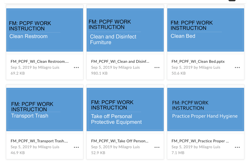 The main objective was to develop a schedule that housekeepers could follow that would include hands on training and to develop content that would be used for creating e-learning modules. I used several different types of software to create presentations, checklists, quizzes, badge inserts, and much more