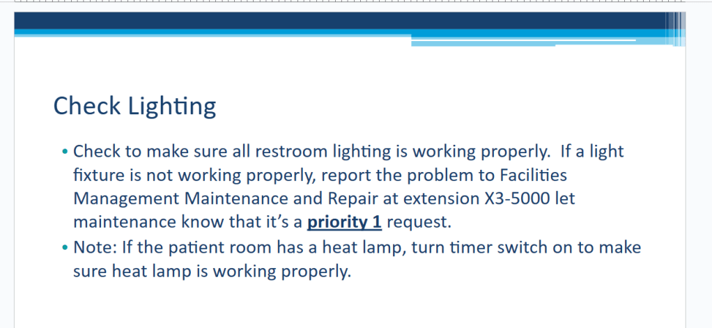 My role for this project was as an Educational Specialist. I was to develop a two week onboarding program for the Environmental Health and Safety Department to train housekeepers and other maintenance personnel.